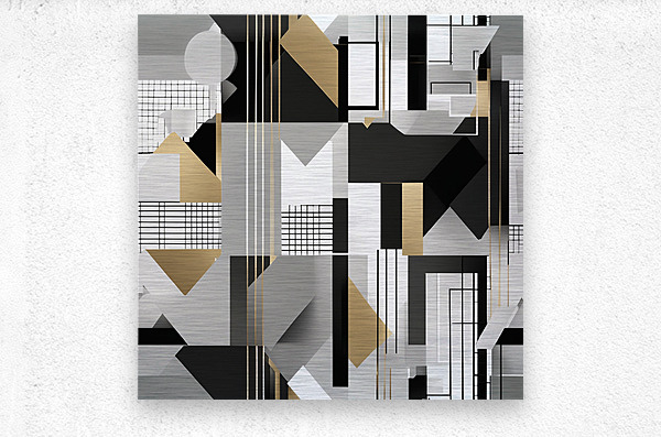 A minimalist exploration of urban geometry and modernism featuring clean lines contrasting tones and metallic accents. Ideal for structured sophisticated clothing and sleek modern interiors.