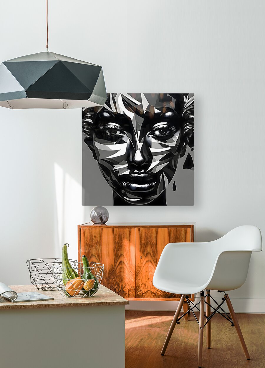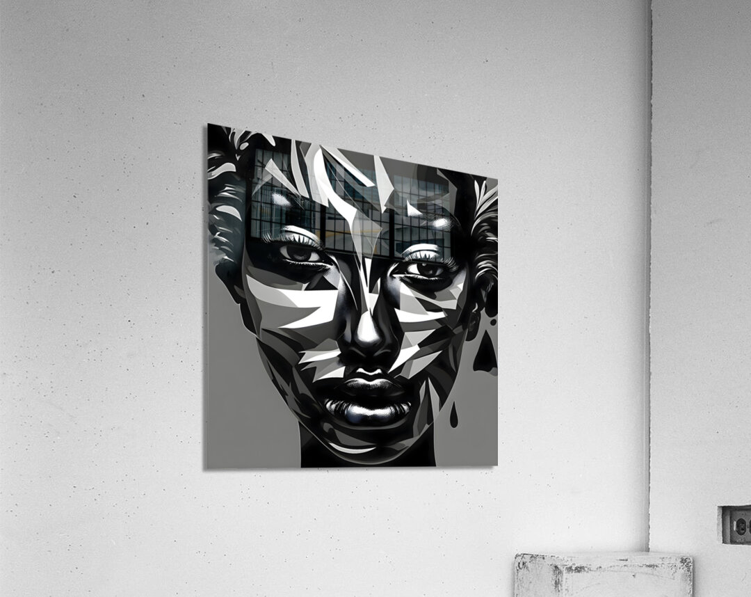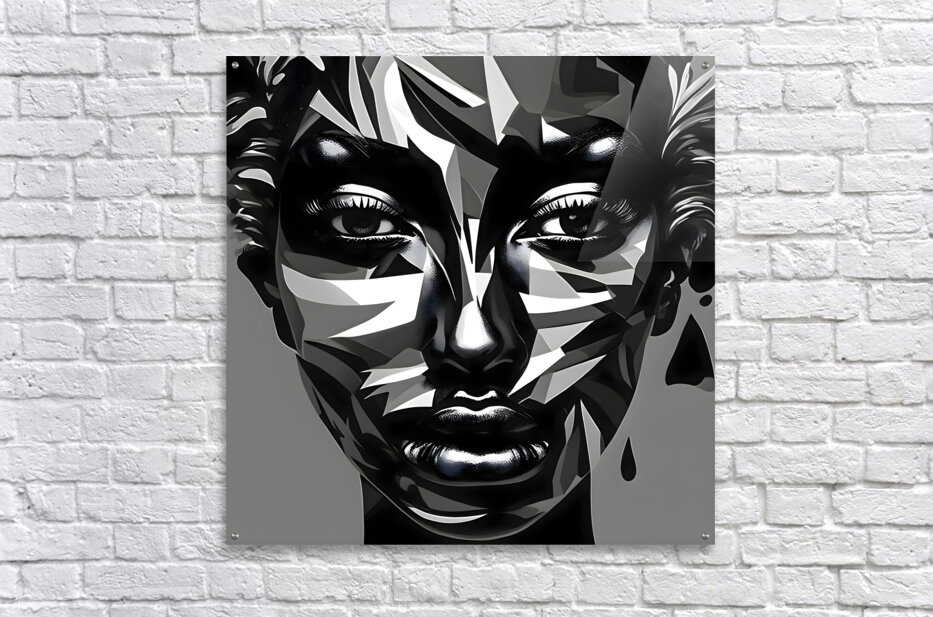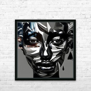 Fractured Strength captures the raw power and resilience of the human spirit through bold geometric abstraction. This high-contrast black and white artwork merges sharp angular shapes with the soft contours of a human face creating a striking balance between strength and vulnerability. The fractured design reminiscent of cubism adds depth and intrigue while the intense gaze of the subject evokes a sense of defiance and determination. Perfect for those who appreciate modern abstract art with a powerful emotional undertone this piece is suitable for both fashion and wall art.