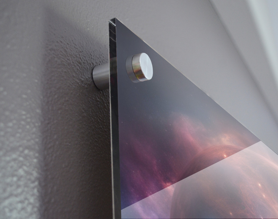 Printed to the edge - Ready to hang - provided with 4 premium polished aluminum stand off ( wall screws and mounting hardware provided )