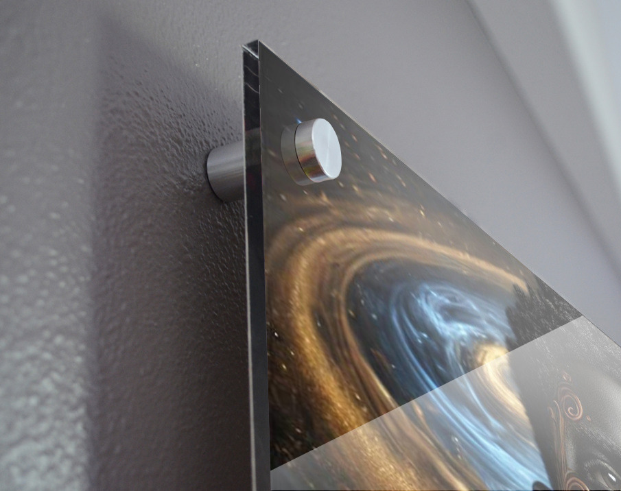 Printed to the edge - Ready to hang - provided with 4 premium polished aluminum stand off ( wall screws and mounting hardware provided )