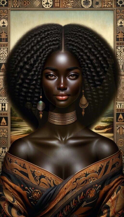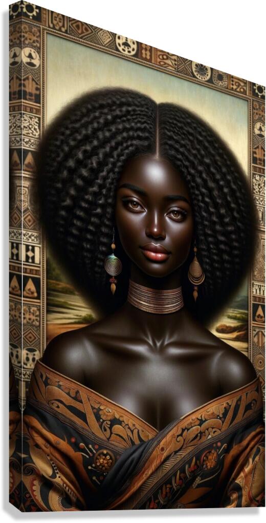 The "Black Mona Lisa" encapsulates a blend of classical artistry with a modern touch, celebrating the essence of melanin-rich beauty. It's more than a painting—it's a statement that challenges conventional ideals and appreciates the diversity of beauty. The subtle smile of the Black Mona Lisa, akin to her classical counterpart, holds a myriad of untold stories, reflecting a deep sense of wisdom and an unspoken connection to heritage. This piece isn't just an ode to the historic Mona Lisa, but an embracing of a more inclusive portrayal of beauty, resonating with many who find their reflection in her visage.